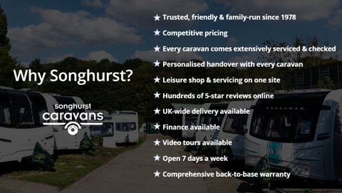 About Songhurst Caravans: Family-run since 1978 · Hundreds of 5-star reviews online · Open 7 days a week.