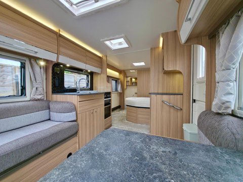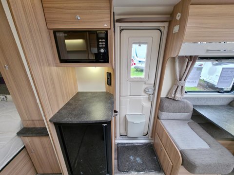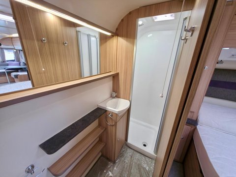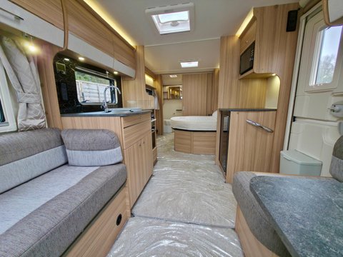 Specification: End Washroom, L Shaped Lounge, Fixed Bed, Fridge, Freezer, Microwave, Heater, Oven, Mains electric, Water heater, Cassette toilet, Shower, Blinds, Fly screens, Door flyscreen, Loose fit carpets, Stereo system, Large rooflight, Battery charger, Alloy wheels, TV Aerial, Hitch head stabiliser, 12 month warranty, Part exchange welcome, Finance available subject to status written quotations available on request, CRiS registered, Truma blown air heating. Loose fit carpets included.
