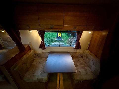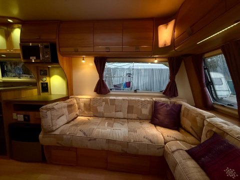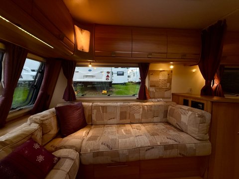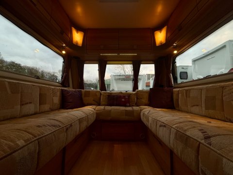 Specification: End Washroom,Fridge,Microwave,Heater,Oven,Mains electric,Water heater,Cassette toilet,Shower,Blinds,Fly screens,Door flyscreen,Loose fit carpets,Stereo system,Heki rooflight,Battery charger,Alloy wheels,Spare wheel,TV Directional Aerial,Hitch head stabiliser,Motor mover,External 230v,6 month warranty,Part exchange welcome,Finance available subject to status written quotations available on request,CRiS registered. Loose fit carpets included.
