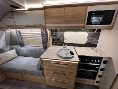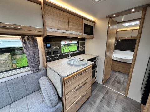 Top spec 2022 Bailey Unicorn Cabrera 4-berth · Single Axle · End island bed · Mid washroom with separate shower · Mid kitchen · Front lounge · Partial service history.