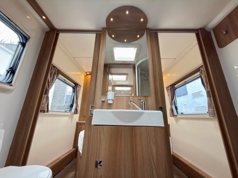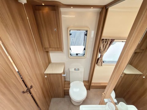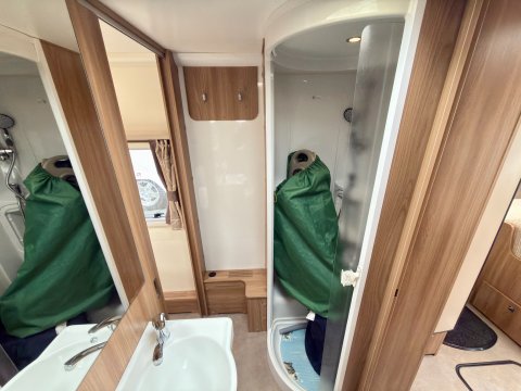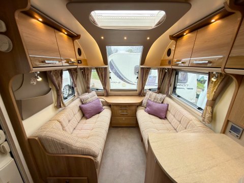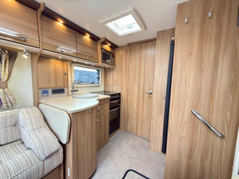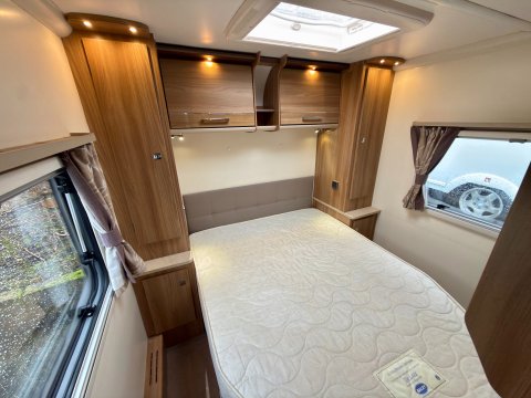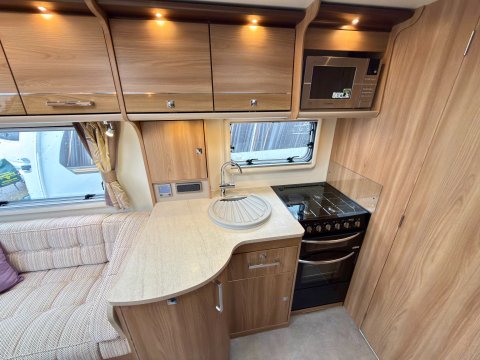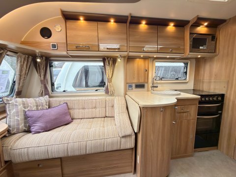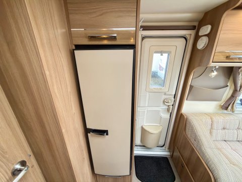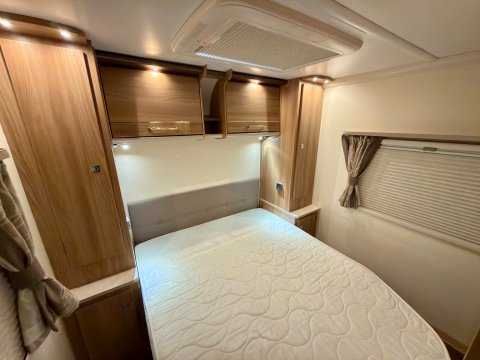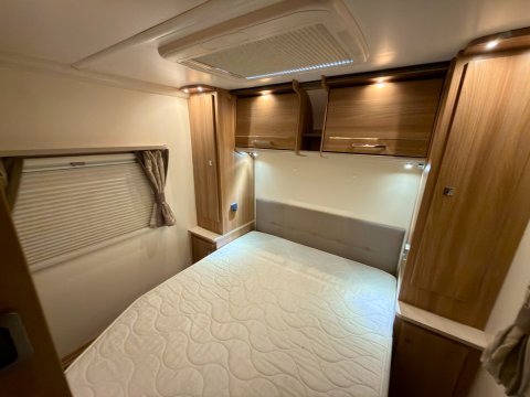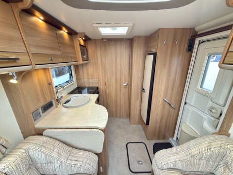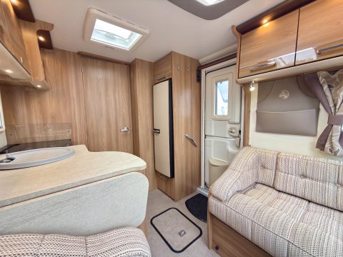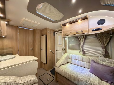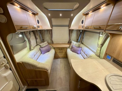 Specification: Fixed Bed, Fridge, Freezer, Microwave, Oven, Mains electric, Water heater, Cassette toilet, Shower, Blinds, Fly screens, Door flyscreen, Loose fit carpets, Stereo system, Heki rooflight, Battery charger, Solar panel, Alloy wheels, Spare wheel, TV Directional Aerial, Awning, GRP side panels, Hitch head stabiliser, Motor mover, External BBQ point, External 230v, 6 month warranty, Part exchange welcome, Finance available subject to status written quotations available on request, CRiS registered, Alde wet central heating. Loose fit carpets included.
