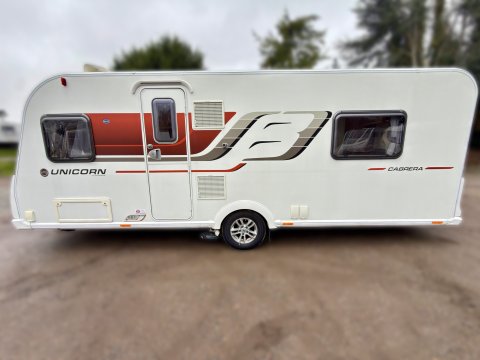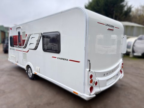 Top Spec 2017 Bailey Unicorn Cabrera 4-berth · Single Axle · Sought after End island bed · Mid washroom with separate shower · Mid kitchen · Front lounge · Partial service history.