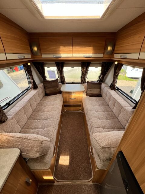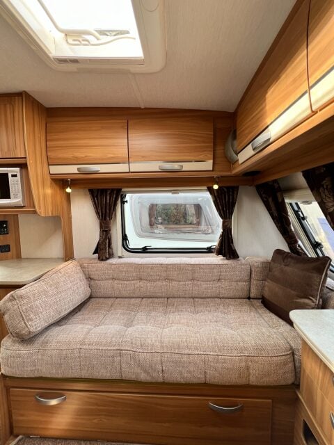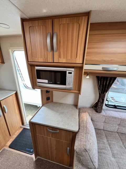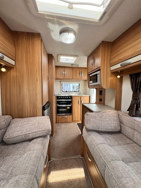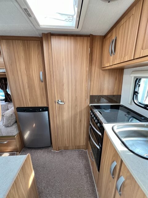 Specification: Fridge, Microwave, Oven, Mains electric, Water heater, Cassette toilet, Shower, Blinds, Fly screens, Door flyscreen, Loose fit carpets, Stereo system, Heki rooflight, Alarm, Battery charger, Alloy wheels, Spare wheel, TV Directional Aerial, One piece Aluminum side panel, Hitch head stabiliser, Motor mover, External 230v, External shower point, 6 month warranty, Part exchange welcome, Finance available subject to status written quotations available on request, CRiS registered. Loose fit carpets included.