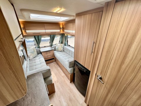 Specification: End Washroom, Fridge, Microwave, Oven, Mains electric, Water heater, Cassette toilet, Shower, Blinds, Fly screens, Door flyscreen, Loose fit carpets, Stereo system, Heki rooflight, Battery charger, Alloy wheels, Spare wheel, TV Directional Aerial, Awning, Hitch head stabiliser, Motor mover, External 230v, External shower point, 6 month warranty, Part exchange welcome, Finance available subject to status written quotations available on request, CRiS registered. Loose fit carpets included.