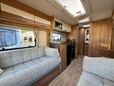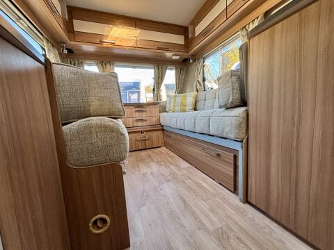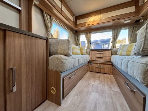 Specification: End Washroom, Fridge, Microwave, Oven, Mains electric, Water heater, Cassette toilet, Shower, Blinds, Fly screens, Door flyscreen, Loose fit carpets, Alarm, Battery charger, Alloy wheels, Spare wheel, TV Directional Aerial, Motor mover, External 230v, 6 month warranty, Part exchange welcome, Finance available subject to status written quotations available on request, CRiS registered. Loose fit carpets included.