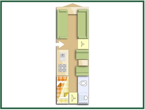 6-berth · Twin Axle · Pull-out bed · Fixed Bunk Beds · Side Dinette · Washroom and separate shower · Mid kitchen · Front lounge · Thorough Service History.